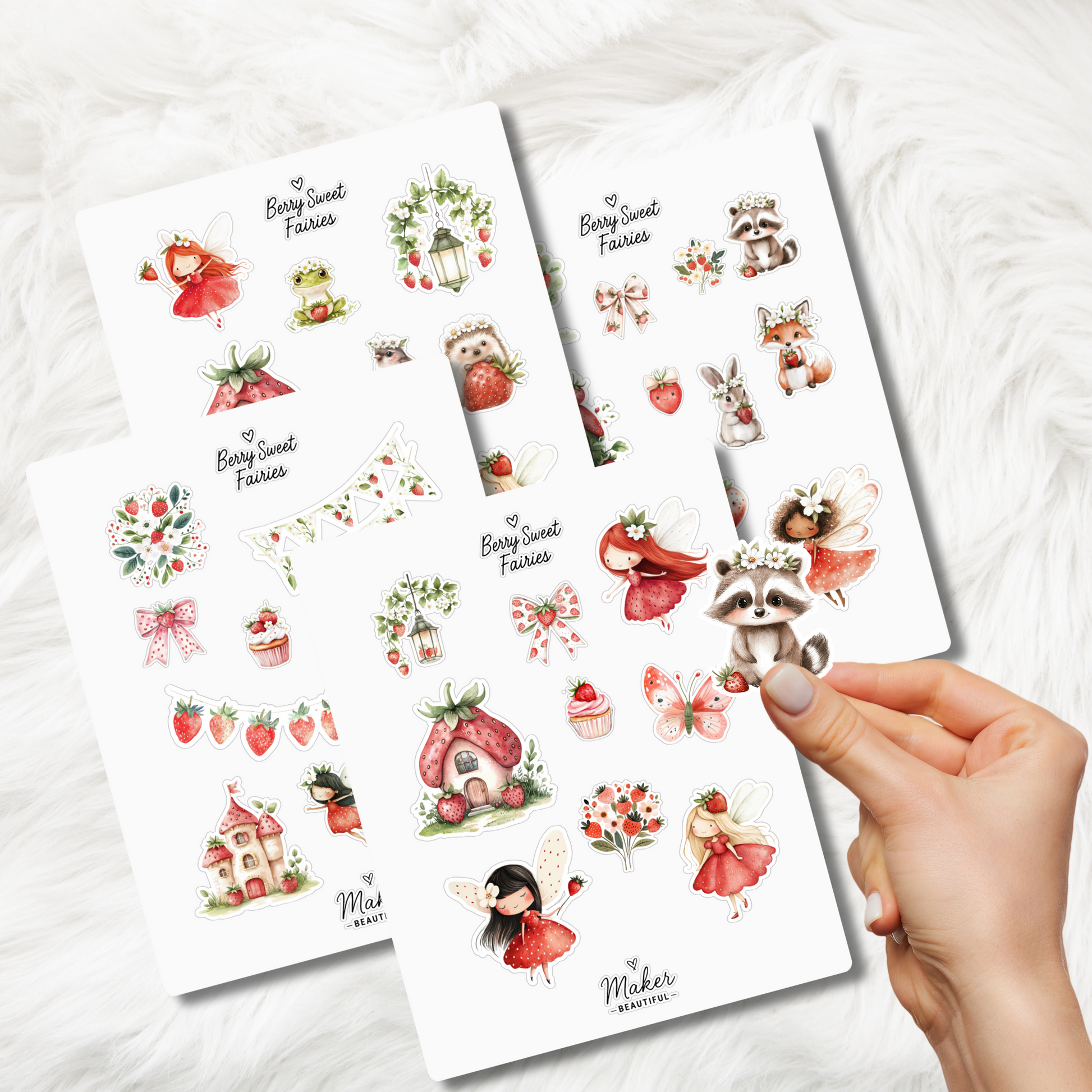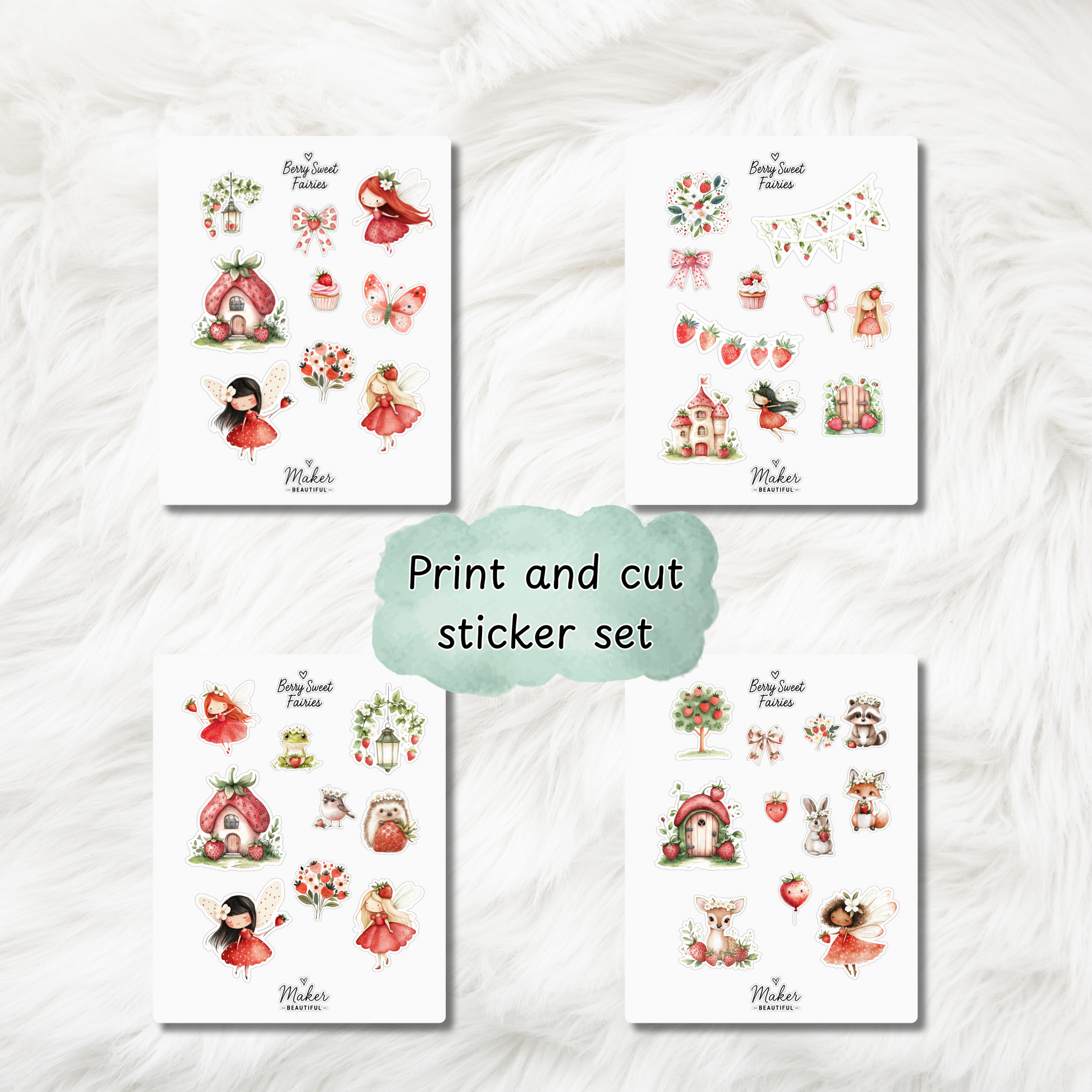 You’ll get 4 full pages of beautifully designed strawberry fairy stickers featuring sweet fairies, bows, blossoms, and berry treats, all delivered in: