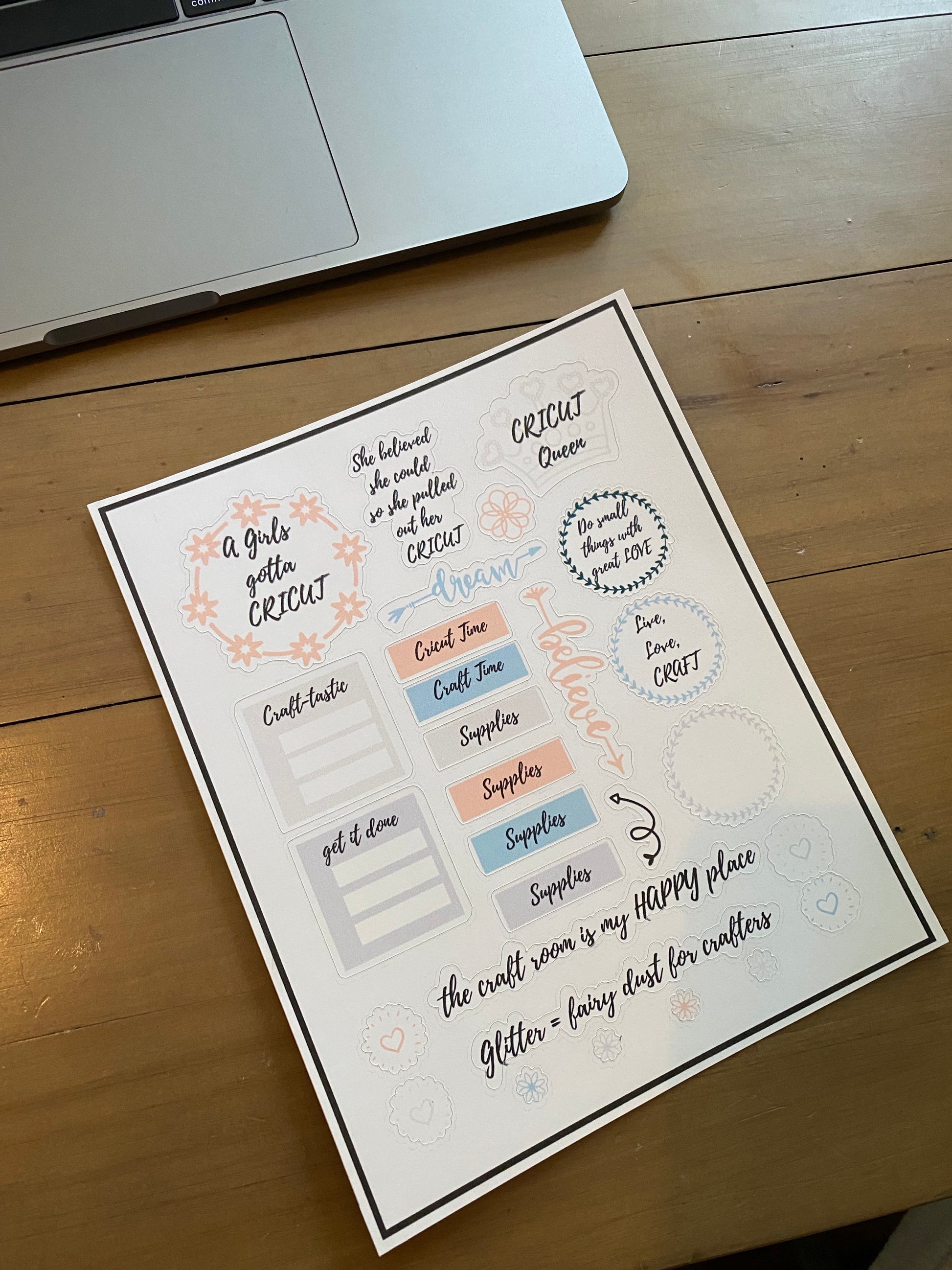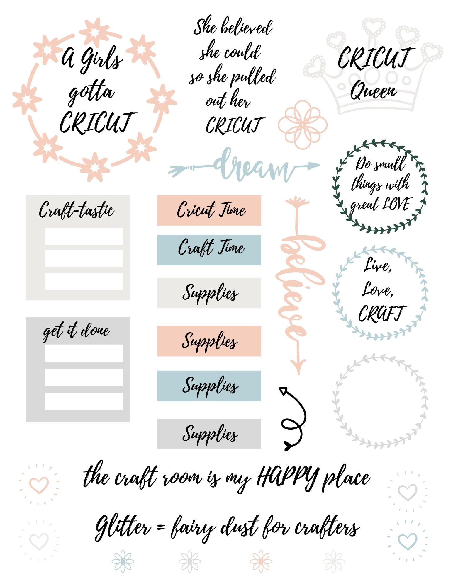 Plus get the bonus print and cut Cricut themed stickers. Ready to use. Print them on your favorite sticker paper 8.5" x11" then cut them out by hand or with your cutting machine like Cricut.